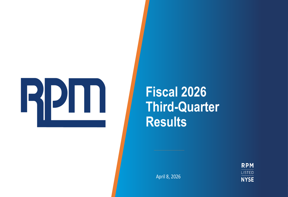 RPM International Inc. provides specialty chemicals for the construction, industrial, specialty, and consumer markets. It operates in four segments: CPG, PCG, Consumer, and SPG. The company offers waterproofing, coating, and traditional roofing systems; sealants, air barriers, tapes, and foams; residential home weatherization systems; roofing and building maintenance services; sealing and bonding, subfloor preparation, flooring, and glazing solutions; resin flooring systems, polyurethane, MMA waterproof, epoxy floor paint and coatings, concrete repair, and protection products; fire stopping and intumescent steel coating, and manufacturing industry solutions; and rolled asphalt roofing materials and chemical admixtures. It also provides concrete and masonry admixtures, concrete fibers, cement performance enhancers, curing and sealing compounds, structural grouts and mortars, epoxy adhesives, injection resins, polyurethane foams, floor hardeners and toppings, joint fillers, industrial and architectural coatings, decorative color/stains/stamps, restoration materials, concrete panel wall systems, flooring systems, fluorescent colorants and pigments, shellac-based-specialty and marine coatings, and fuel additives. It offers fiberglass reinforced plastic gratings and shapes; corrosion-control coating, containment and railcar lining, fire and sound proofing, heat and cryogenic insulation, and specialty construction products; amine curing agents, reactive diluents, and epoxy resins; fire and water damage restoration, carpet cleaning, and disinfecting products; wood treatments, coatings, and touch-up products; nail enamels, polishes, and coating components; paint contractors and DIYers, concrete restoration and flooring, metallic and faux finish coatings, cleaners, and hobby paints and cements; and caulks, adhesives, insulating foams, and patches, spackling, glazing, and repair products. The company was incorporated in 1947 and is headquartered in Medina, Ohio.